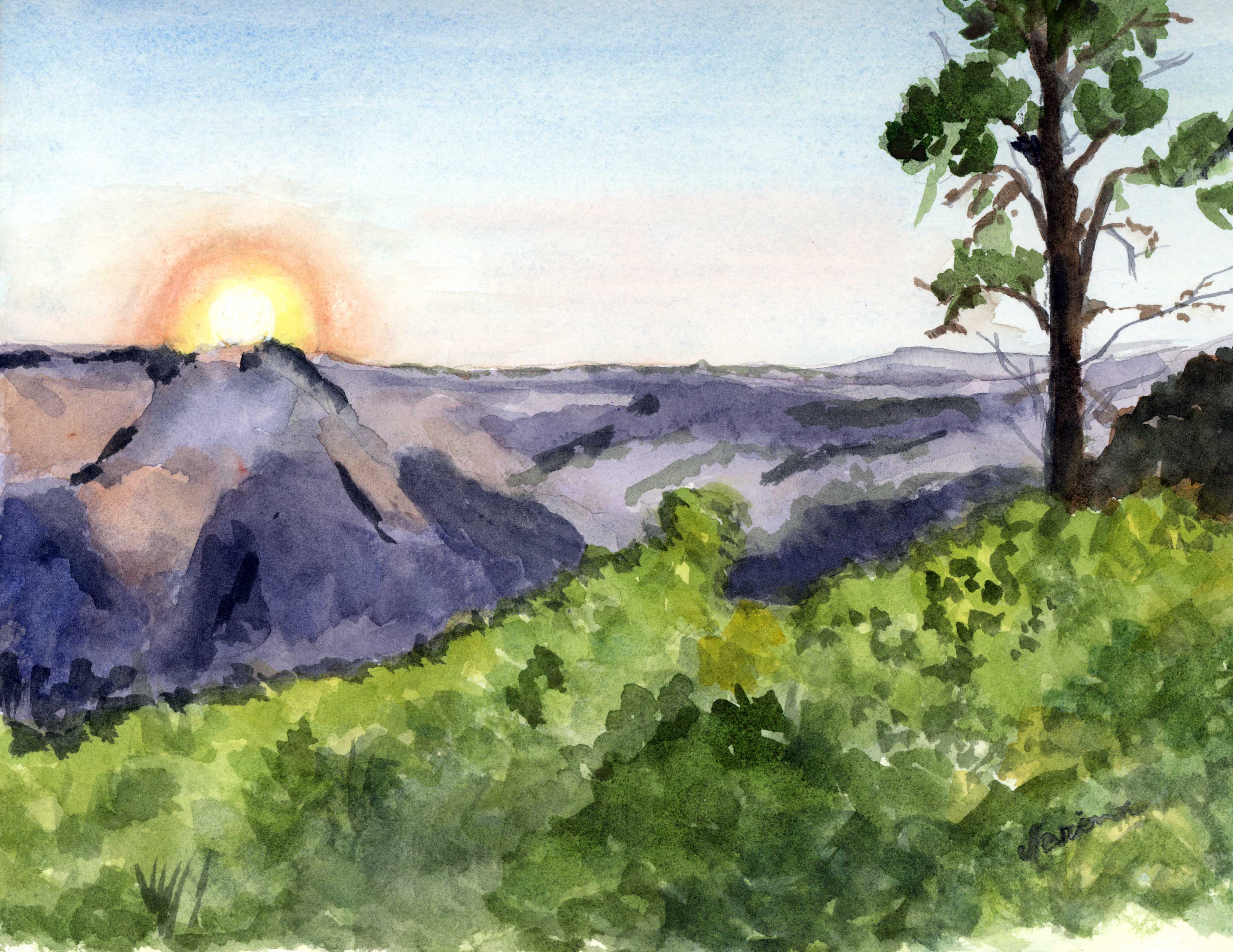 This is an 11x14 Watercolor. It shows the beautiful Smoky mountains one early fall day.